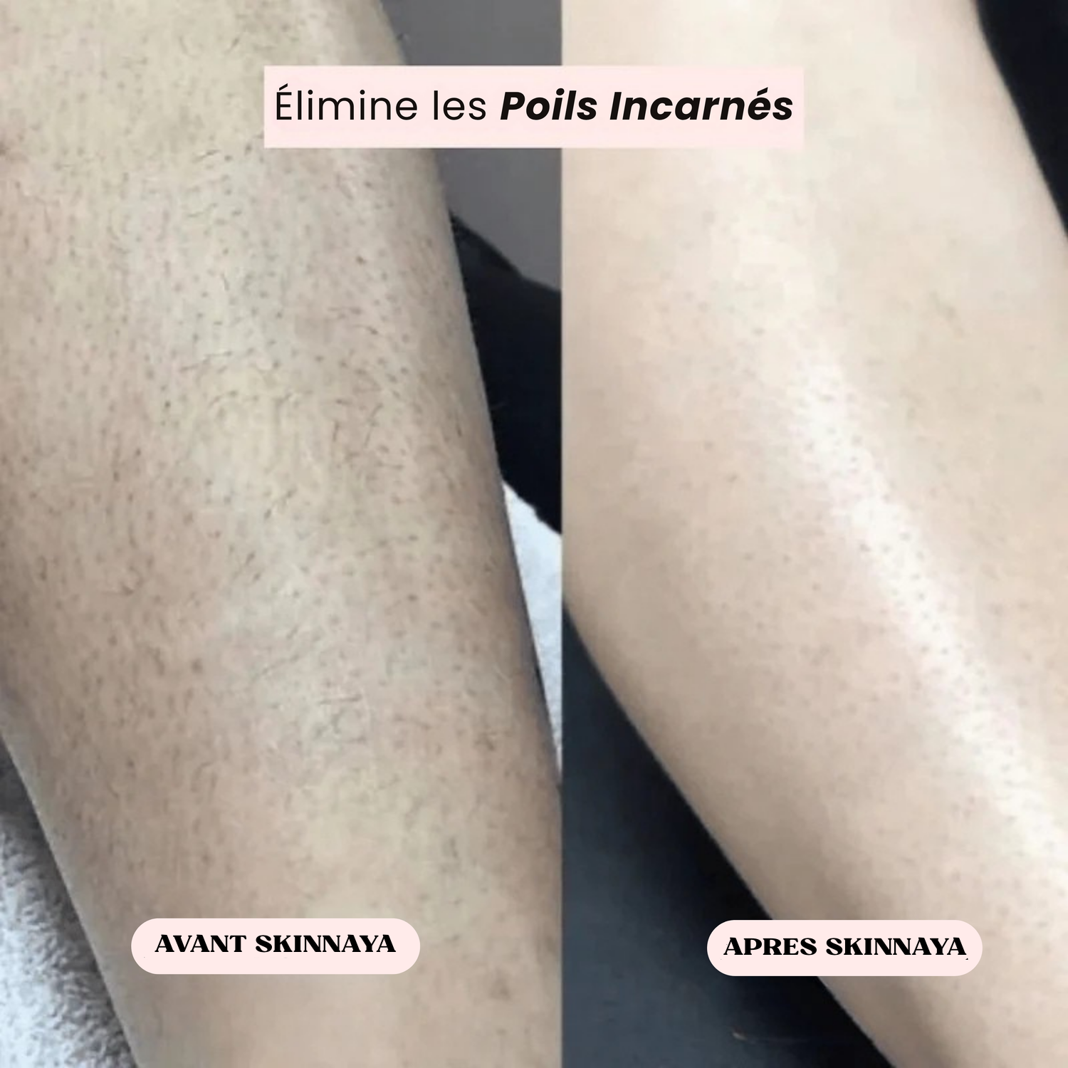 Grâce à sa conception innovante, le rasoir Skinnaya élimine les poils sans contact direct avec la peau, minimisant les risques de coupures ou de poils incarnés.